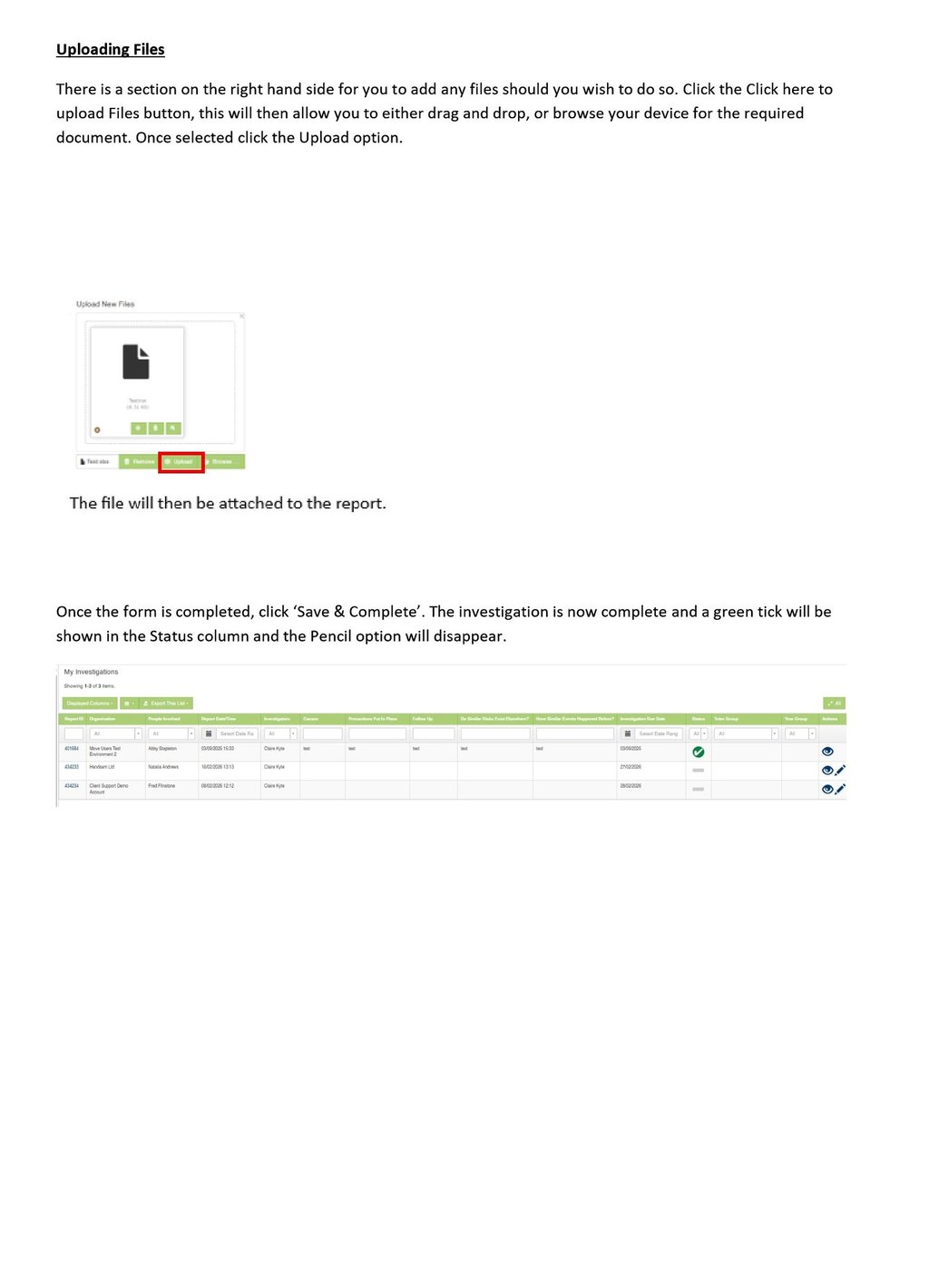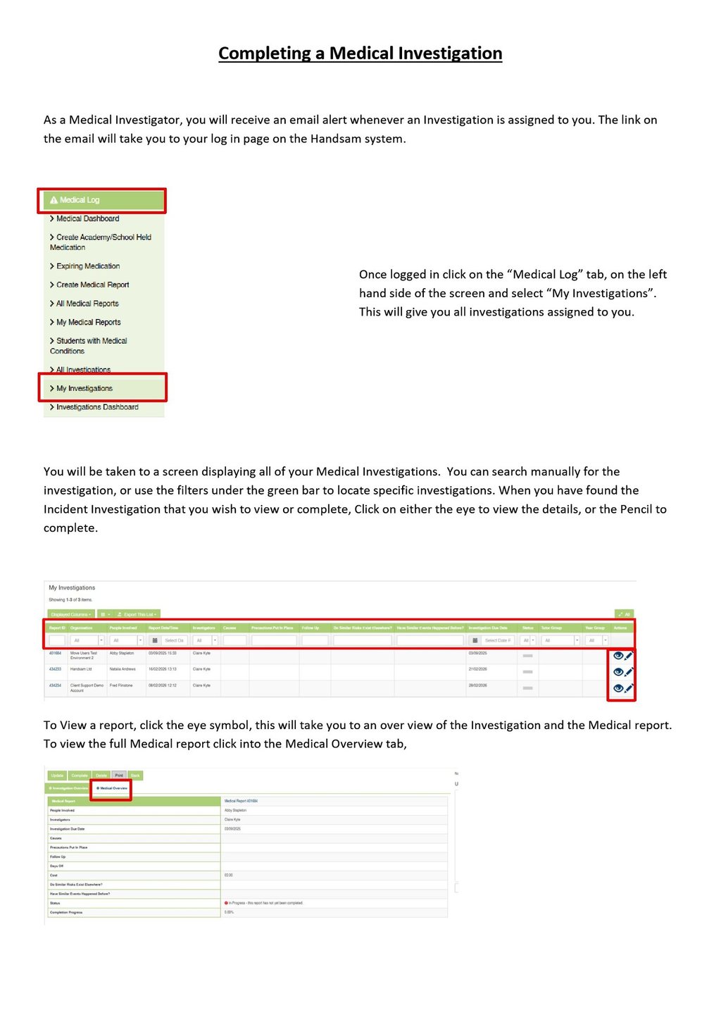 Medical Log - Completing a Medical Investigation