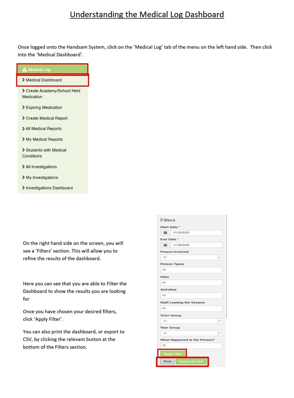 Medical Log - Understanding the Medical Log Dashboard